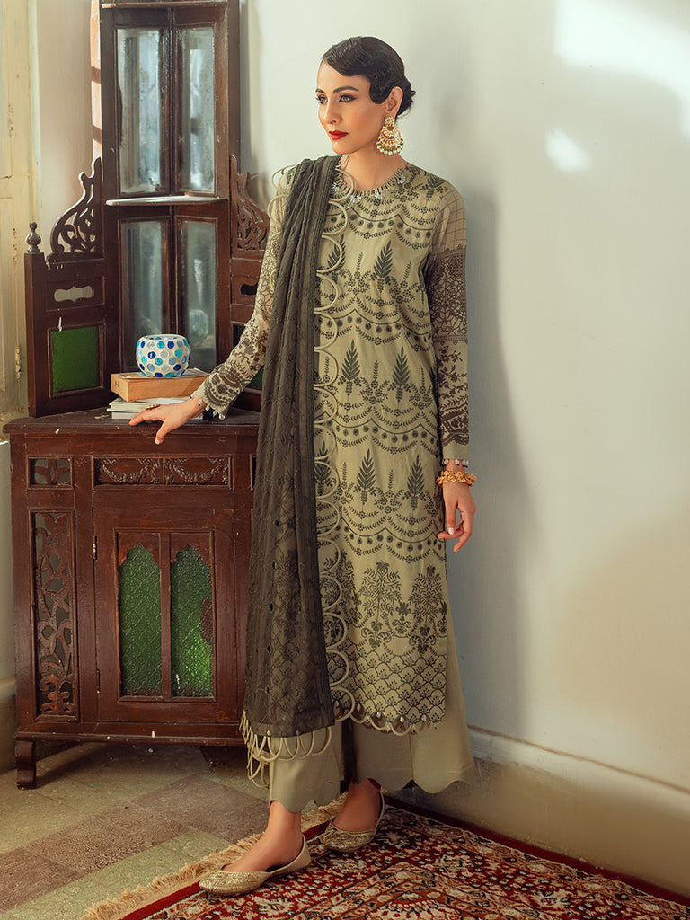 This 3 piece elegant embroidered unstitched dress features intricate embroidery and a timeless design. Made...