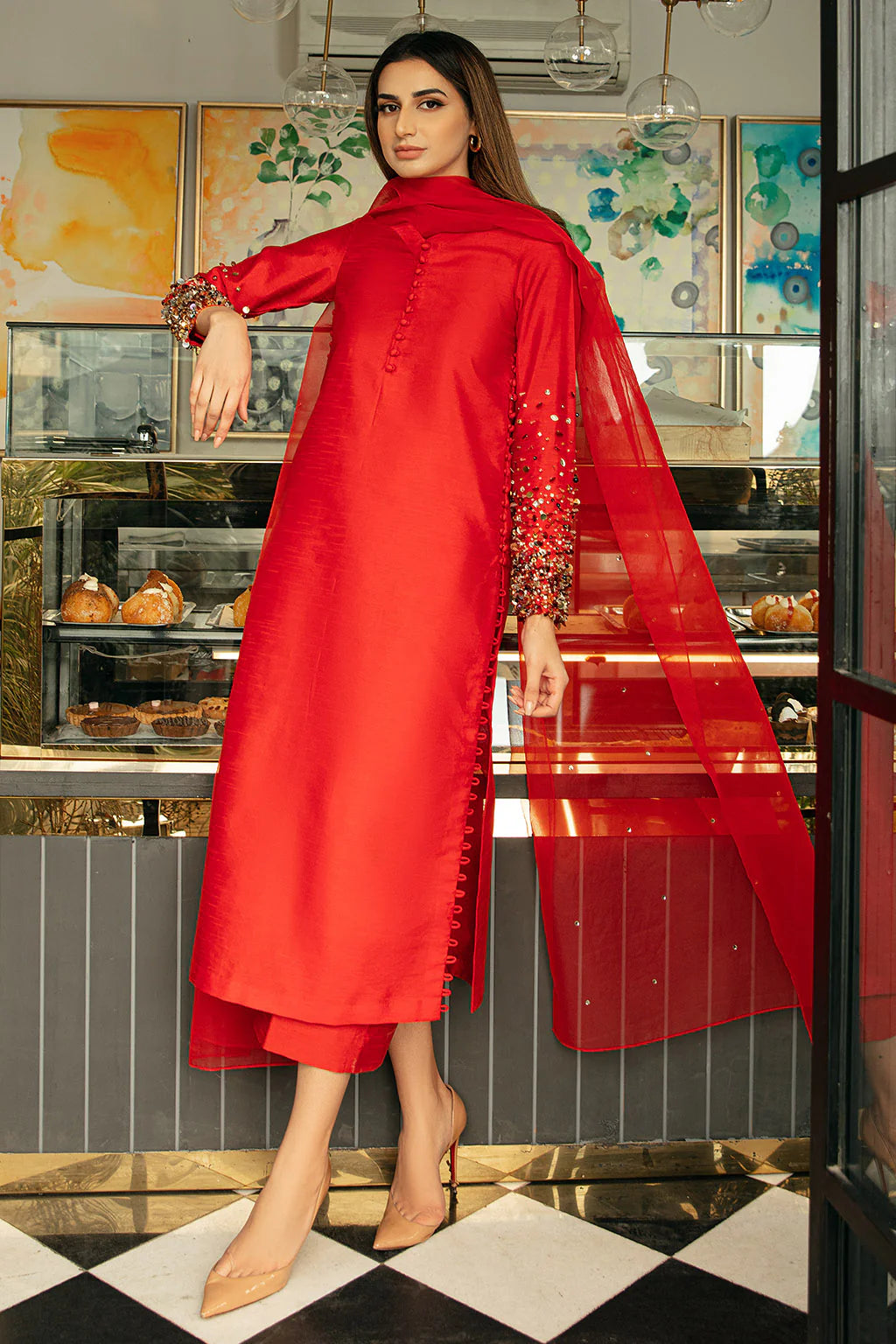 Discover effortless style with our 3 Piece Printed Embroidered Shirt Paired With Cutwork Pants And...