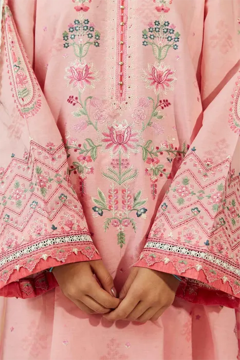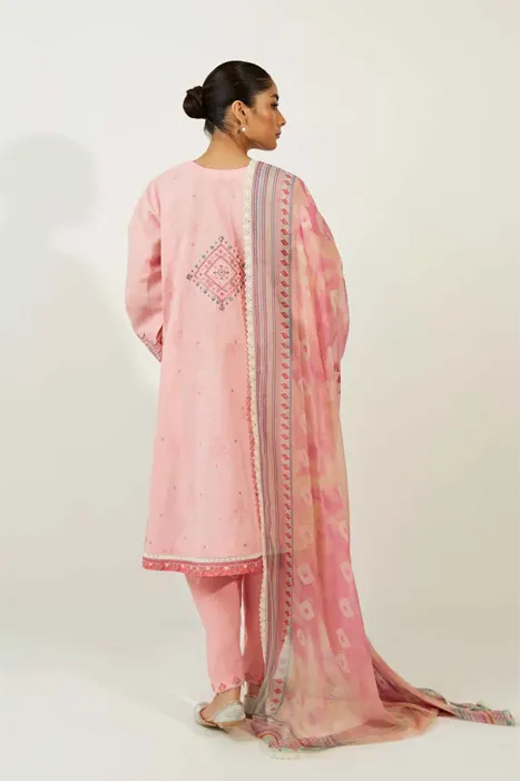This elegant dress features intricate embroidery on three separate pieces, providing a versatile and stylish addition to any wardrobe. Its unstitched design allows for a customizable fit, while its sophisticated embroidery adds a touch of refinement. Elevate your fashion game with this timeless and versatile dress.